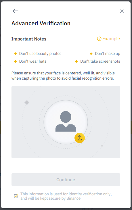 Binance에서는 신용카드로 코인을 구입하거나, 2 BTC 이상 인출을 하려면, 인증을 받아야 합니다.