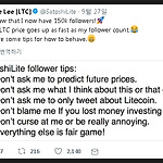 매일 채굴기 이야기만 하다 보니, 재미도 없고 지루하실것 같아서, 이번에는 가벼운 이야기를 전하려고 합니다. 비트코인의 창시자 Satoshi Nakamoto 는 활동을 멈춘지 오래 되었습니다. 그러다가, 2016년 5월에 호주의 IT전문가 CRAIG WRIGHT 가 자신이 사토시 나카모토 임을 밝혔습니다. 그럼에도 아직 진짜임을 믿지 않는 사람들이 많습니다. 아무튼 정체를 드러낸 이후에는 트위터를 가끔 하고는 있습니다. 그런데 비해 비트코인의 동생으로 불리는 라이트코인(Litecoin)의 창시자 찰리리(Chalie Lee)는 아주 열심히 트위터 활동을 합니다. 어찌나 열심히 활동을 하는지, 팔로워가 33만명이나 되죠. 그는 하루에도 몇 차례씩 트윗을 날리며 가상화폐 시장의 주요 뉴스를 전달하기도 하고, ..