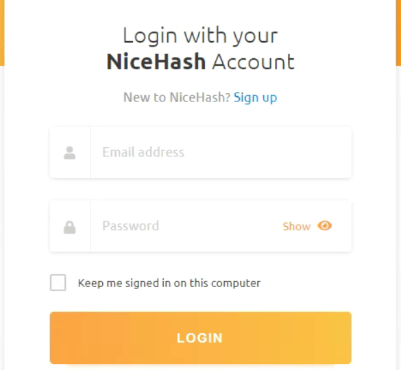 NiceHash 로그인창이 열립니다.