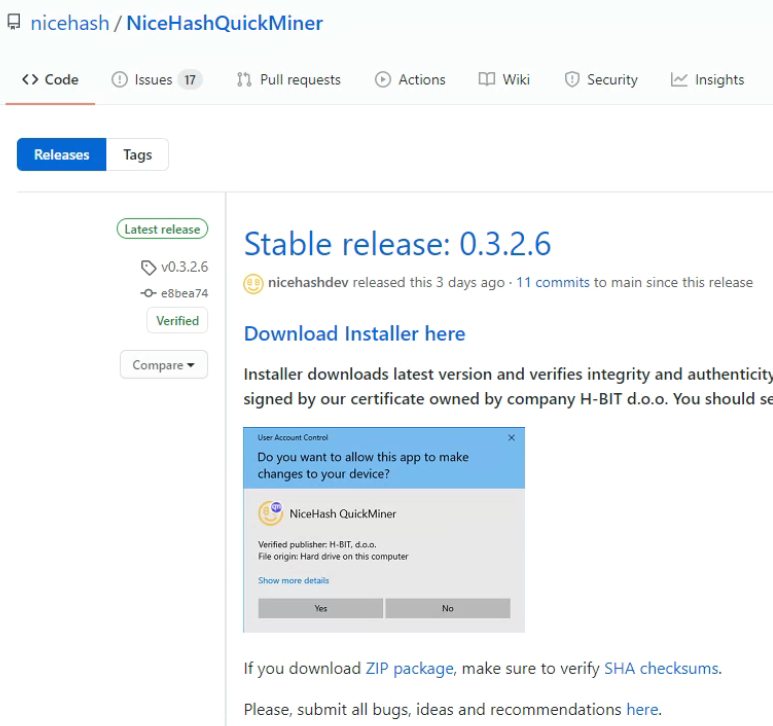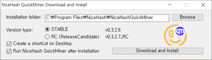 그 중에서 편하게, 설치형인 NiceHashQuickMinerInstaller.exe 를 다운로드 받겠습니다.
