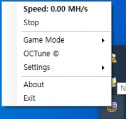 이중에서 Game mode는 게임을 하게될때에는 채굴을 멈추도록 하는 기능 입니다.