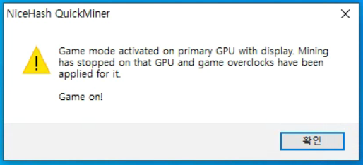 평소에는 채굴을 하다가, 게임할 때는 게임에 집중을 할 수 있도록 해주는 편의 기능 입니다.