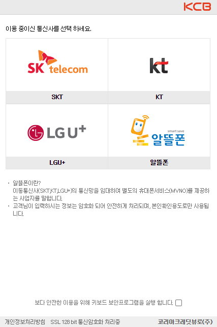 버튼을 클릭 하면, 이동통신사를 선택하도록 되어 있습니다.