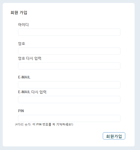 - 정보 수정 : 아이디와 사용자번호를 API키를 확인할 수 있으며, 이메일과 비밀번호를 변경하거나, PIN번호를 초기화 하는데 사용할 수 있습니다.