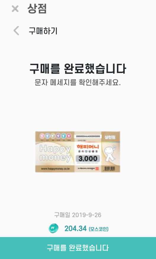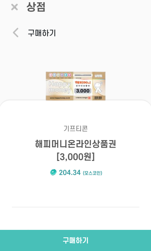 지금까지 모은 모스코인으로 해피머니온라인상품권을 구매를 시작해 보겠습니다.