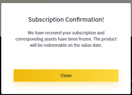 위화면을 보시면, 왼족의 BTC의 경우 Subscribe 버튼이 활성화 되어 있고, 오른쪽의 BNB의 경우는 Subscription Ended라고 표시 됩니다. BNB는 연이율 10%나 되므로, 열리고 50초 만에 순식간에 마감이 되었습니다. 사실 저는 극적으로 한구좌 lending했습니다. 이제, 남아 있는 BTC라도 어서 참여해야 겠습니다. BTC의 Subscribe 버튼을 클릭 합니다.