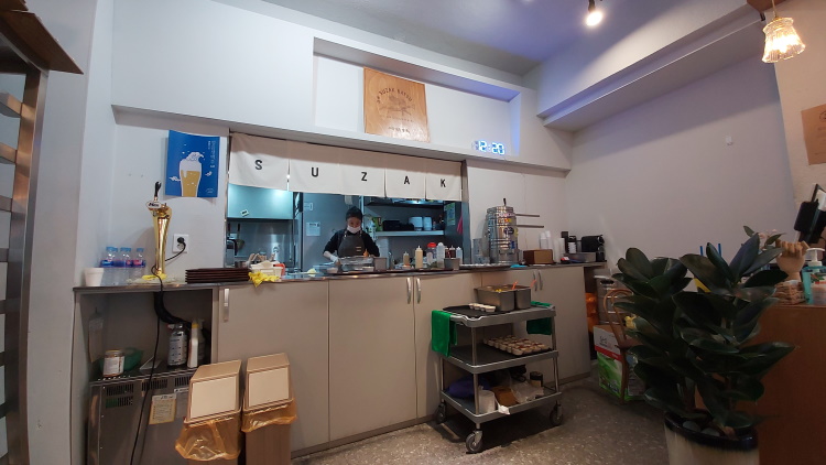 실내에 들어와서, 입구쪽을 보면, 아래 사진과 같은 모습 입니다. 2인테이블로 구성되어 있으며, 창을 바라보는 테이블도 있습니다. 예상 하시겠지만, 코로나 시국에도 점심시간에는 줄을 서야 먹을 수 있는 곳 입니다.