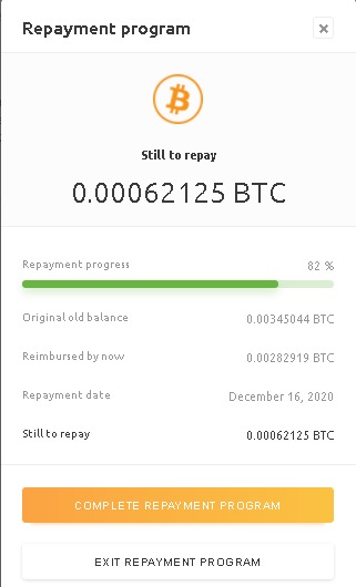 당연히 Complete Repayment Program 버튼을 클릭 하였으며, 상환 프로그램이 종료되었다는 안내멘트가 나오고, 다음날 입금이 될거라고 합니다.