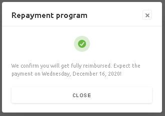 당연히 Complete Repayment Program 버튼을 클릭 하였으며, 상환 프로그램이 종료되었다는 안내멘트가 나오고, 다음날 입금이 될거라고 합니다.