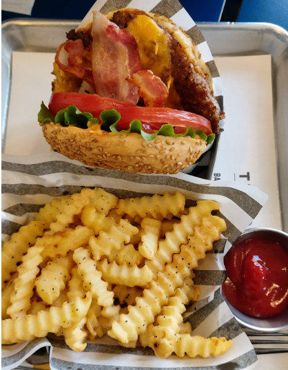 하지만, 버거는 패티와 치즈 베이컨, 그리고 버거번(빵)까지 매우 조화로운 맛 이었습니다. 육즙도 풍부하고, 짠맛도 강하지 않으며, 토마토가 너무 많지도 않고, 번도 적당히 촉촉하고 맛이 있었습니다.