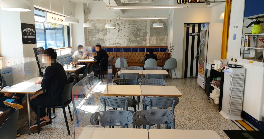 퀄리티버거를 표방하는 다운타우너는 한남에 있는 이태원점이 본점이고, 청담점, 안국점, 잠실점, 광교점, 제주점이 있습니다. 이번에는 잠실점에 가 보았습니다. 잠실점은 11:00 오픈으로 되어 있어서, 점심시간이 되기전에 방문을 하기 위해 서둘러 찾아 갔습니다. 11시20분 즈음에 도착을 했는데, 다행이 자리가 있었습니다. 하지만, 30분이 지나자 줄을 서기 시작 하더군요. 포장을 하는 사람, 매장 내부에서 먹는 사람 따로 따로 줄을 섭니다.