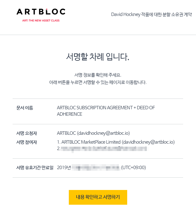 이를 이용하여 세제혜택을 노리고 부의 이전이 일어나기도 하구요. 예술작품은 우리 일상속에 있지만, 그 가치가 너무 높아 일반인들이 쉽게 소유하기 어렵습니다. 이를 블록체인을 이용하여 지분으로 나누고, 일부를 소유하는 개념으로 알려진 메세나(Maecenas)라는 코인이 이미 알려져 있습니다. 거의 유사한 컨셉으로 한국에서 코인이 되려는 아트블록에서 "데이비드 호크니 : David Hockney"의 작품 2개를 블록체인 기반으로 지분을 나누어 판매를 하고 있어서, 참여를 해보았습니다.