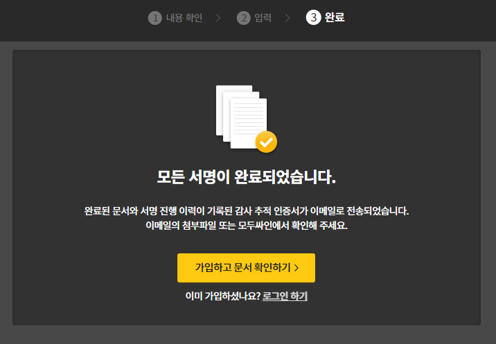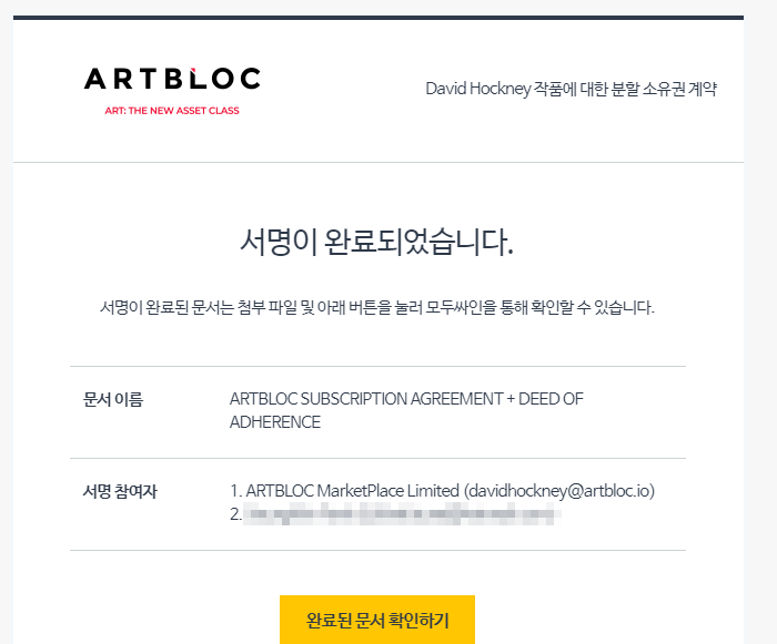 서명이 완료되었다는 이메일이 왔습니다.