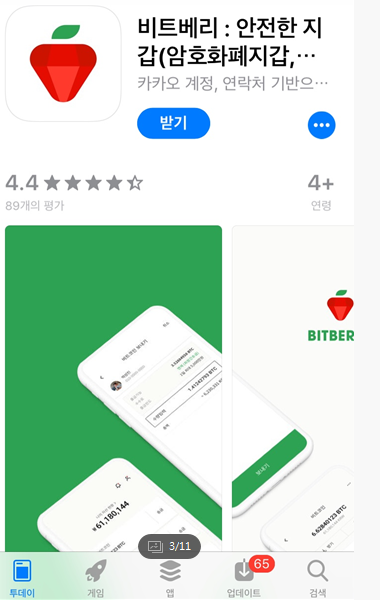 비트베리앱을 다운로드 받기 위해, 앱스토어로 이동을 합니다.