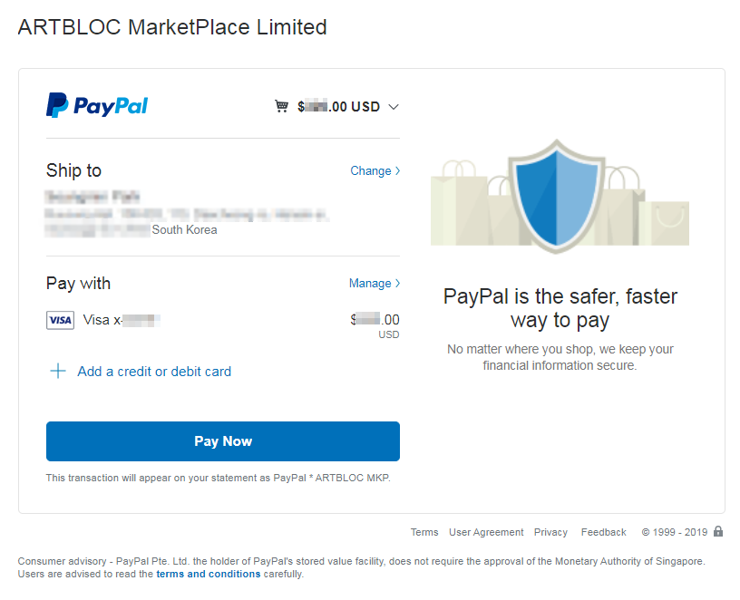 페이팔에서 결제를 본격적으로 시작하는 화면 입니다.
