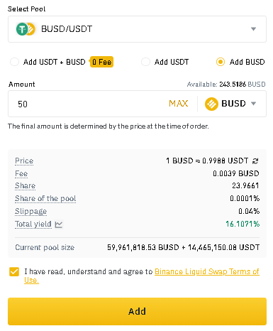 그래서, 제가 보유하고 있는 USDT와 BUSD를 활용하여, add USDT + BUSD로