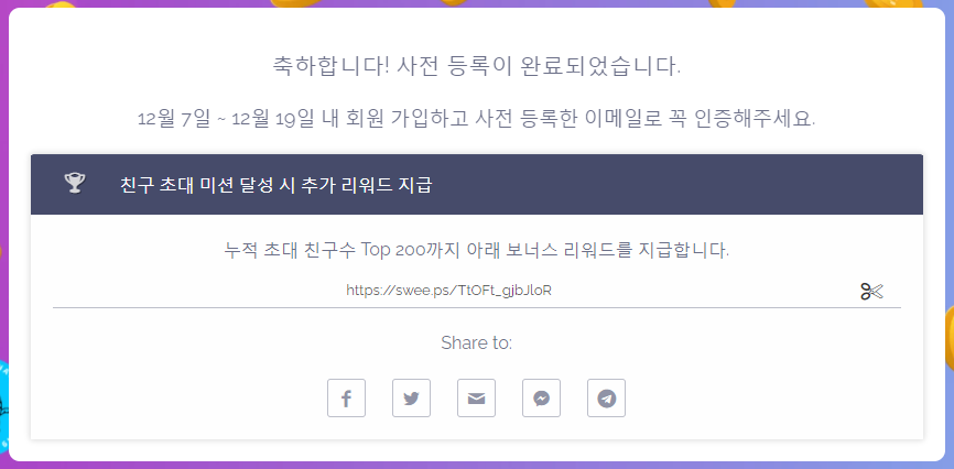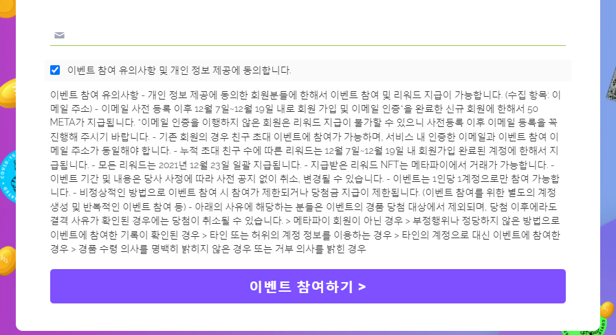 여기에서 이메일을 등록하고, 인증을 하고 나면, 12월7일 부터 인증된 이메일로 회원가입으 하면, 50META를 무조건 준다는 겁니다.