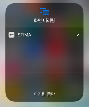 화면미러링이 종료 되면, 아이콘이 파란색을 바뀌고, 안드로이드폰에 v체크 표시가 됩니다.