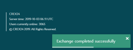 버튼클릭이 완료 되면, 우측 하단에, Crex로 교환이 완료되었다는 알림이 표시 됩니다. 이렇게 끝전을 처리 하였습니다.
