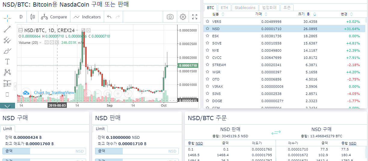받고나서, NSD/BTC거래소로 가니, 171사토시나 됩니다. 푼돈을 오래 보다보면, 이것도 꽤 커보이는 착시 현상(^^;)이 나타나네요. 그래서 가끔씩만 봐야 합니다. 즉시 BTC로 교환했습니다.
