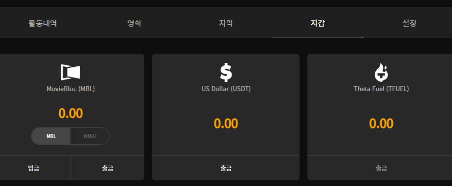 내 지갑 : 무비블록에서 사용하는 Wallet 입니다. 입출금을 할 수 있습니다.