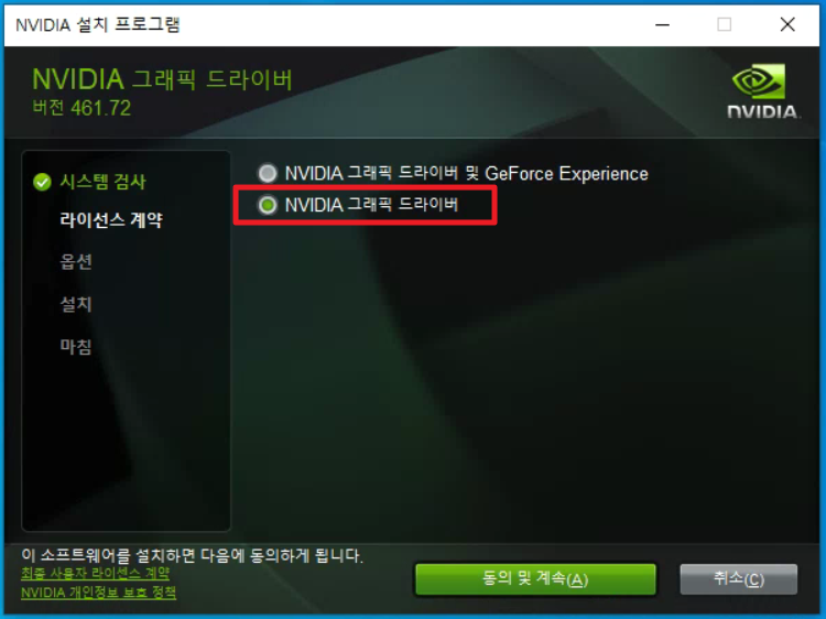 저는 다른건 필요 없으므로, NVIDIA 그래픽 드라이버만 체크 하여 설치를 진행 합니다.