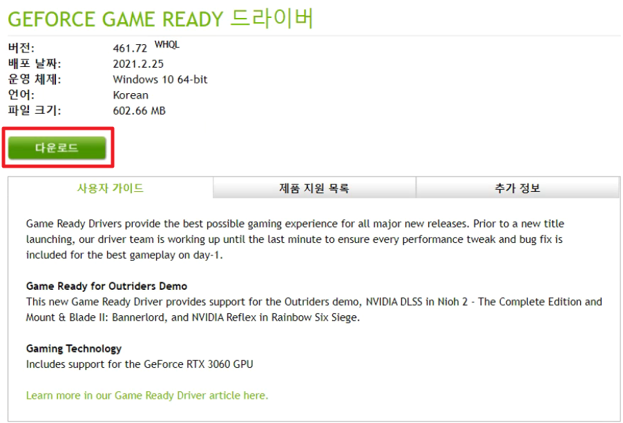 저는 이번에 버전 458 버전 이상의 드라이버가 필요하여, 가장 최신 버전을 다운받으려 합니다.
