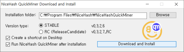 나이스해시 퀵마이너 : NiceHash QuickMiner