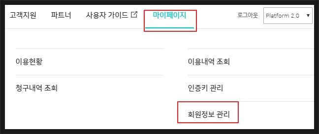 1. 결제 정보 등록을 위해 마이페이지 > 회원정보 관리로 이동 합니다.
