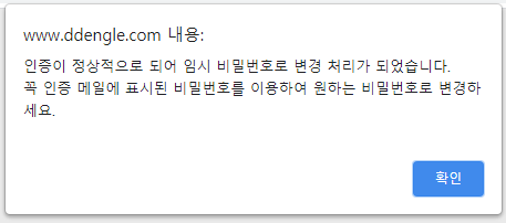 임시 비밀번호로 변경이 되었으니, 이메일에 있는 임시비밀번호로 로그인을 하라고 합니다.
