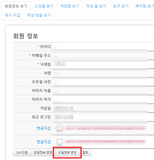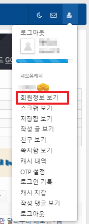 그러기 위해, 회원정보 보기 메뉴를 클릭 합니다.