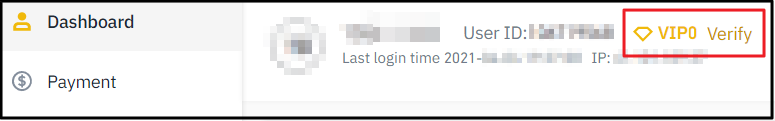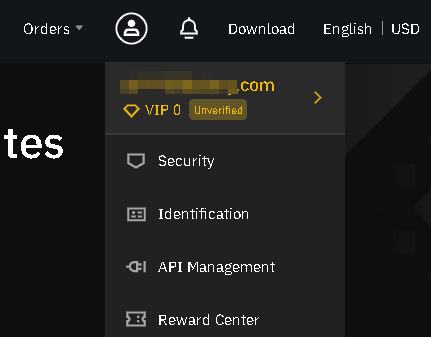 로그인이 된 상태이면, 사람모양 아이콘을 클릭하면, 아래와 같은 화면이 표시됩니다. 계정이 표시되고, VIP0 (Unverified)라는 상태가 표시됩니다. 클릭을 해야겠죠.