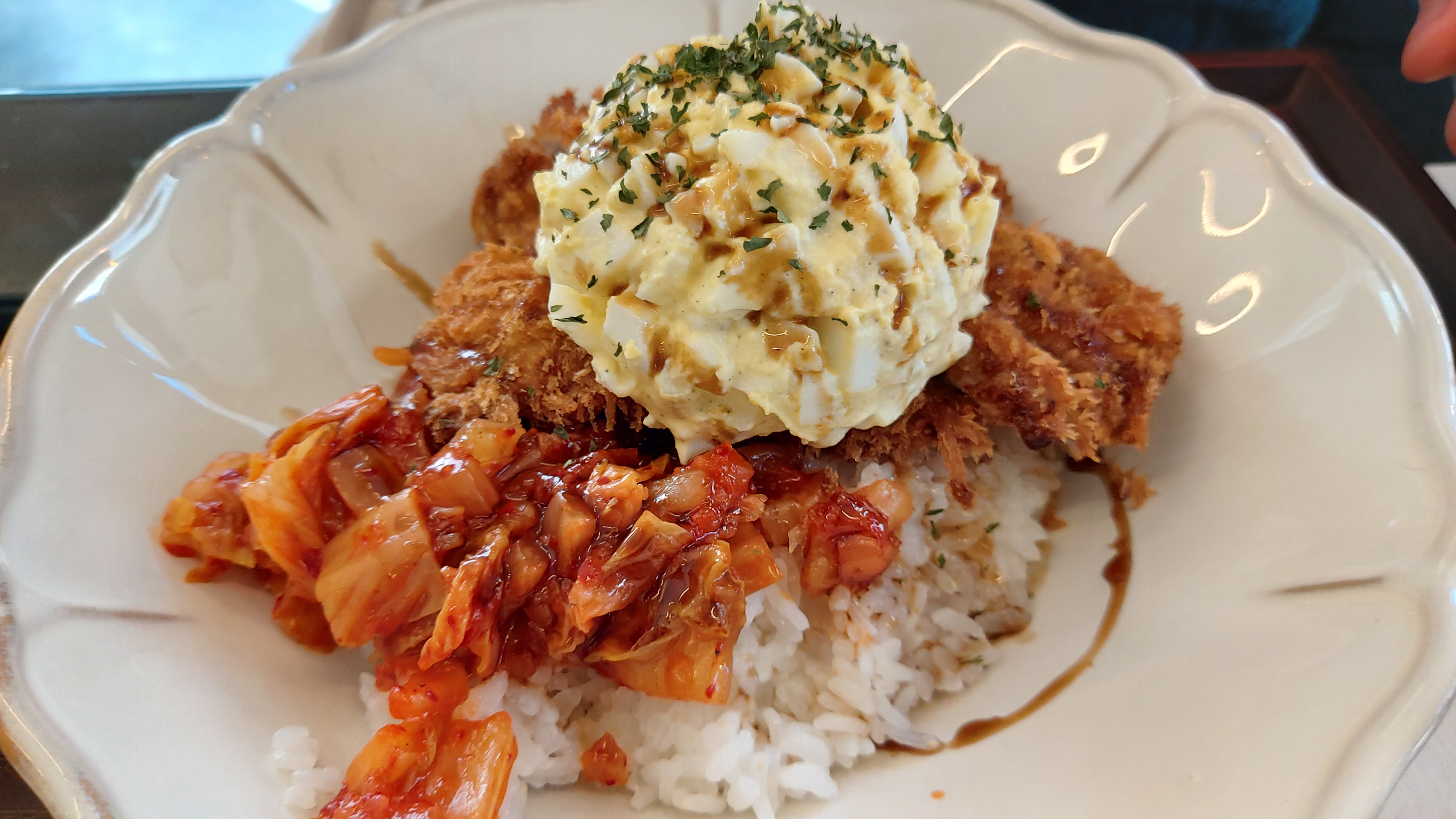 마지막으로 달짝한 타래소스와 애그샐러드, 그리고 볶음김치가 만난 등심돈카츠는 타마고가츠동 입니다. 느끼함을 멀리하고 싶으신 분들에게 적합한 메뉴 같아요.