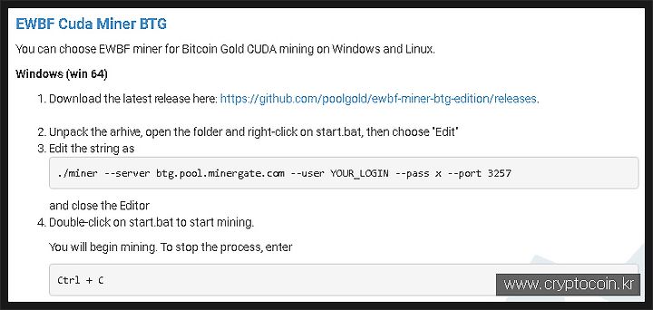 아래 주소는 마이너게이트에서 알려주는 비트코인골드 채굴 방법 입니다.