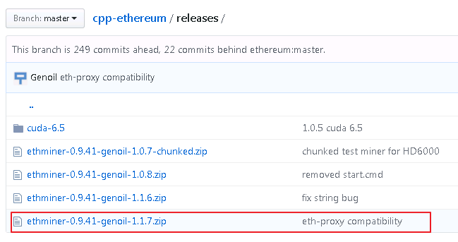 윈도우즈용 마이너가 연결된 링크 (https://github.com/Genoil/cpp-ethereum/tree/master/releases)로 이동을 해서, 가장 최신 프로그램을 선택하고, 다운로드를 받습니다.