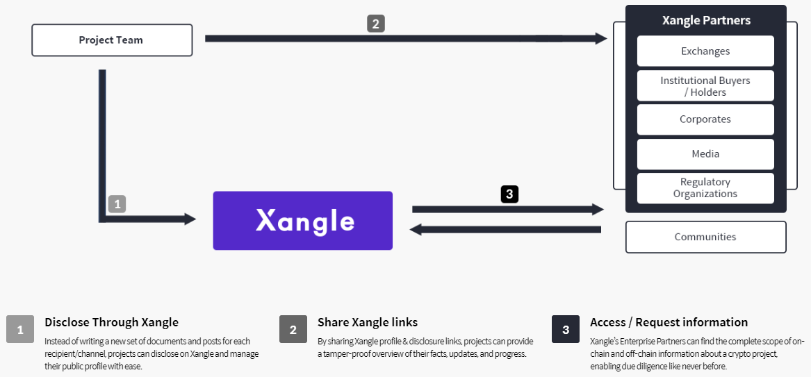 그럼에도, 지금까지 코인들이 투명하지 못한 방식으로 정보를 제공하는 등, 문제를 많이 일으킨 점이 있기에, 기존 주식시장에서 공시제도라는 컨셉을 가져온 점은 좋은 시도라고 보여집니다. 현재 코빗, 빗썸, 코인원 등 다양한 거래소와 제휴를 통해 정보를 가져오고 있으며, Xangle에서 내세우는 3가지 운영원칙은 다음과 같습니다.