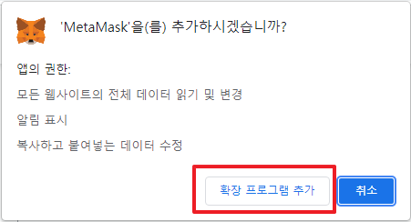 브라우저에서 아래와 같이 확장 프로그램 추가할 것인지 물으면, 버튼을 클릭합니다.