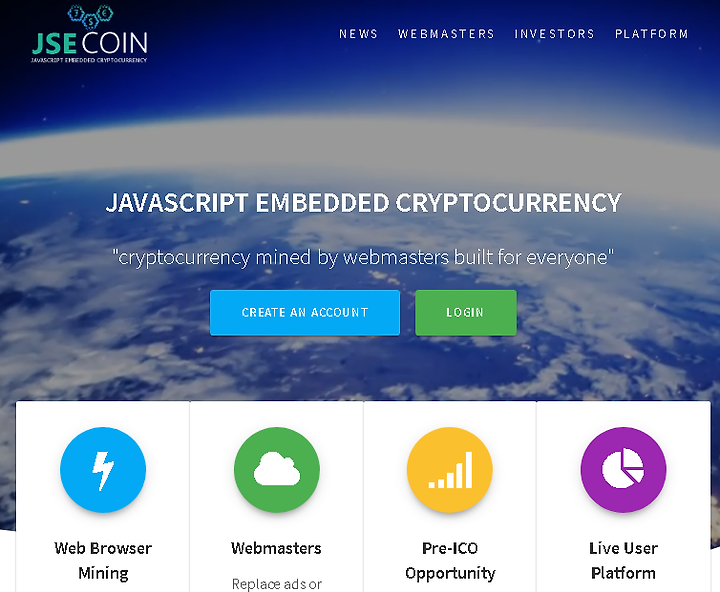 그런데, 얼마전에, 신기한(?) 새로운 가상화폐를 알게 되었습니다. 명칭은 JSECOIN이고, 자바스크립트 엠베디스 가상화폐 (Javascript Embeded Cryptocurrency) 라는 설명이 붙습니다. 자바스크립트를 이용해서 채굴을 한다고 하는데, 대략 자체적으로도 채굴을 할 수 있고, 홈페이지를 갖고 있는 사람은 방문자들의 브라우저를 통해 채굴을 하는 방식을 이용하는 것 같습니다. 한때, 마이너게이트에서 브라우저를 이용한 채굴을 진행한 적이 있기에, 그와 유사한 기술을 이용하는 것일 거라고 예상을 했습니다. 그래서, 과연 어떤 모습인지 한번 확인을 해보려고 합니다.