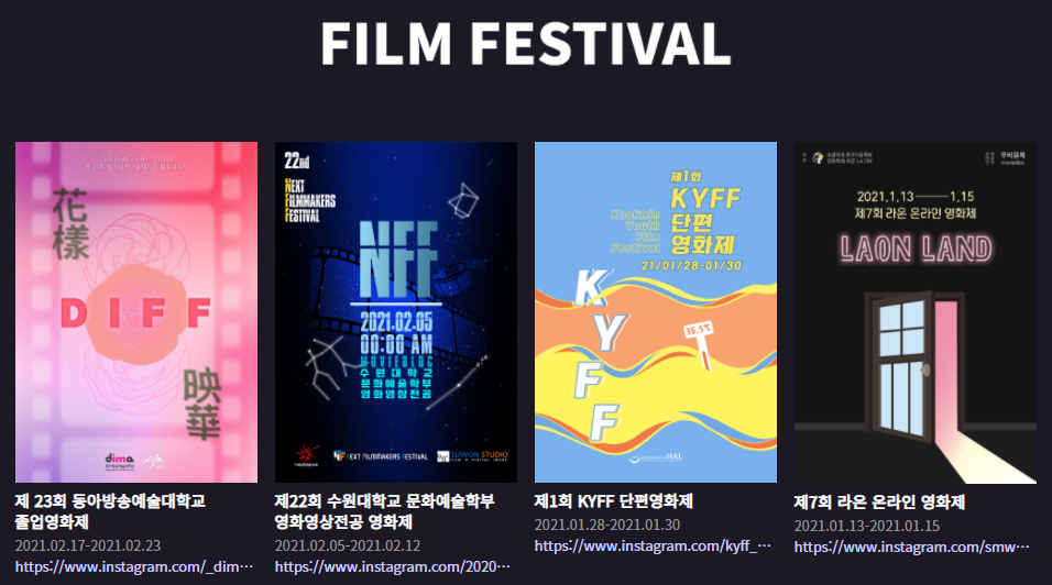 온라인 영화제를 진행하여, 일정 기간 영화제에 출품한 영화들은 무료로 볼 수 있습니다.