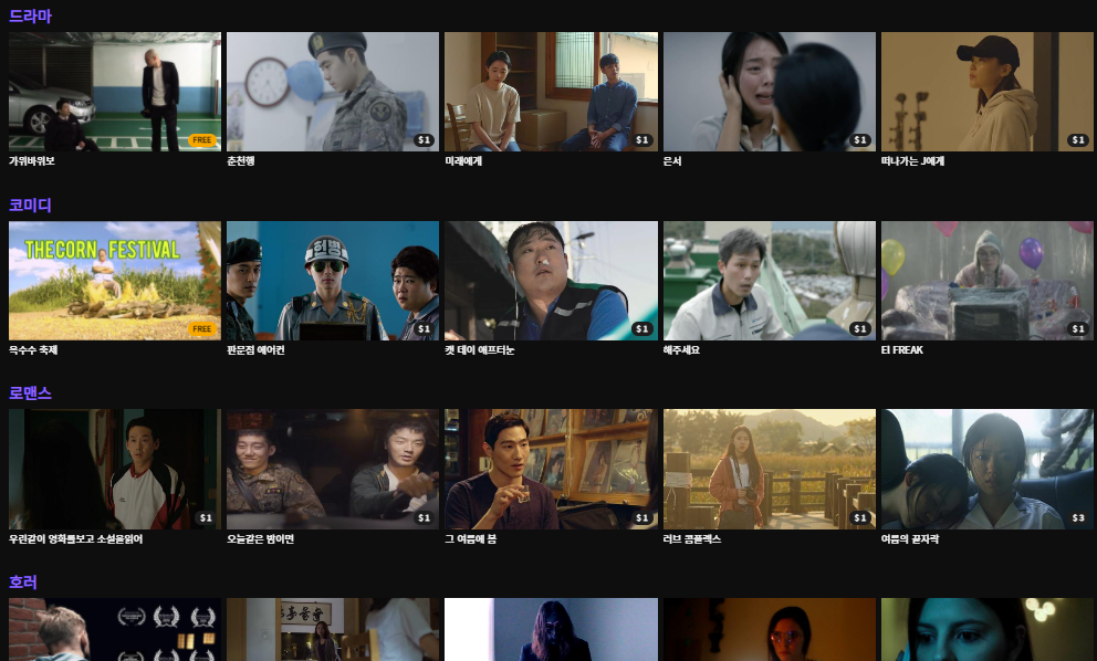 또, 영화가 단편영화만 있다는 것이 틈새 시장이기도 하지만, 시장성이 충분한지 고민해 봐야 할 것 같습니다.